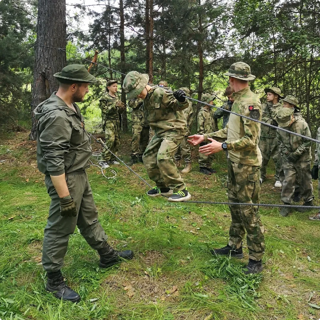 – Ловля рыбы, веревочный курс, маскировка в экзаменационном походе.